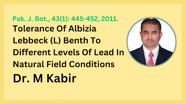 The healthy seeds of Albizia lebbeck (L.) Benth were collected randomly from the Karachi University campus. The experiment was conducted in natural field conditions at Department of Botany, University of Karachi. The top ends of the seeds were slightly cut with a clean scissor to remove any possible dormancy. The seeds were sown in large earthen pots having garden soil at 1 cm depth and watered regularly. After two weeks of their germination, uniform size seedlings were transplanted in plastic pots of 7.0 cm in diameter and 9.8 cm in depth containing garden soil. One seedling was transplanted in each pot and was treated with a solution of lead nitrate having 25, 50, 75, 100 and 125 µmol/L concentrations. There were five replicates for each treatment and the experiment was completely randomized. The seedlings were treated with 5 ml of their respective treatment after two days intervals. Pots were reshuffled weekly to avoid light/ shade or any other environmental effect. After 8 weeks seedlings were removed from pots and washed their roots with water. Data on seedling length, root and shoot length, leaf area was obtained. Seedling dry biomass was determined by drying the plant material in an oven at 80oC for 24 hours. Tolerance indices (TI) were determined using the formula given by Iqbal & Rahmati (1992).